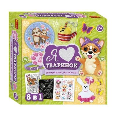 Великий набір для творчості "Я люблю тваринок" Ранок 10100650, 8 виробів своїми руками