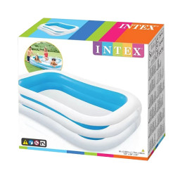 Просторий, універсальний басейн Intex 56483 Прямокутний розміром 262х175 см має високі, пружні бортики 56 см з матовою поверхнею і спеціальні зливні клапани. Виріб з високоякісного, ущільненого вінілу товщиною 0,30 мм, який після тривалого перебування на відкритому сонці не виділяє токсичних речовин і не викликає алергію. Конструкція відрізняється надійно проклеєними стратегічними швами і чудовою якістю виготовлення, завдяки чому басейн буде радувати Вас і Ваших малюків не один сезон поспіль. Модель з колекції Swim Center забезпечена ненадувним, міцним дном, двома автономними, повітряними камерами з комбо клапанами. Активні ігри у воді корисні для загального фізичного розвитку, поліпшення координації рухів, зміцнення опорно-рухового і вестибулярного апарату.