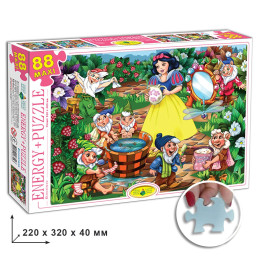 Виконаний з ущільненого, ламінованого картону товщиною 2 мм, універсальний ігровий набір пазли 88, Арт.ЕГ-03. Білосніжка 83293 - відмінний подарунок для маленького підростаючого генія. Пазл складається з 88 деталей, з яких дитина буде складати картинку 300 х 420 мм, де зображений сюжет з казки «Білосніжка». У набір входять великі деталі, які зручно утримувати в маленькій дитячій долоньці, виконані з екологічно чистої, безпечної сировини. Барвистий, чудово виконаний пазл представлений в покращеній колекції української торгової марки «Енергія Плюс», натхненної популярними, улюбленими казками. Юні шанувальники чарівництва і пригод по достоїнству оцінять всі переваги продуманої до дрібниць серії пазлів. Така гра буде корисна для розвитку дрібної моторики, уяви, аналітичного, образного та просторового мислення.